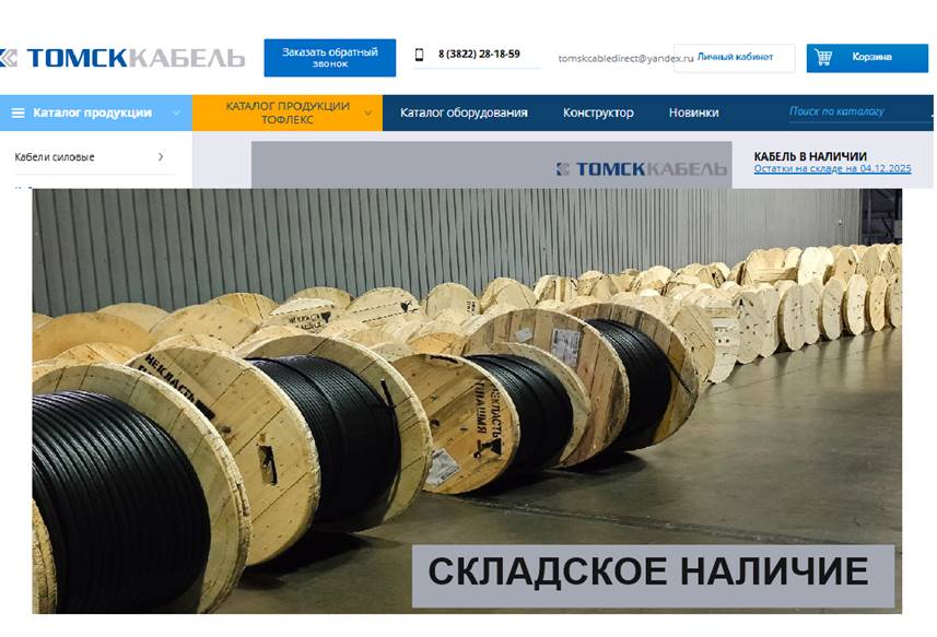 Актуальную информацию об остатках на складе вы можете увидеть на сайте https://tomskcable.ru/ или запросить у вашего менеджера.