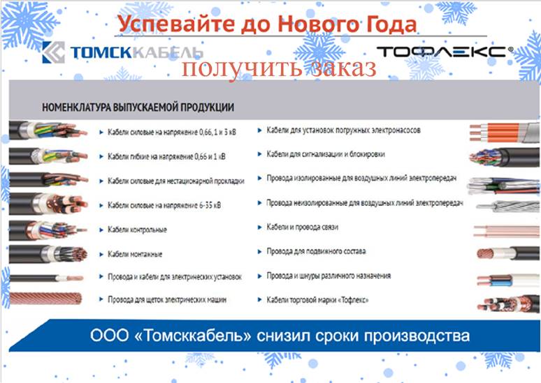 С полным перечнем кабельно-проводниковой продукции можно ознакомиться на сайте: www.tomskcable.ru/catalog/