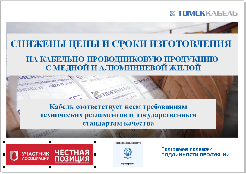 Томский кабельный завод значительно снизил цены на кабельно-проводниковую продукцию с медной и алюминиевой жилой, так же уменьшил сроки изготовления.